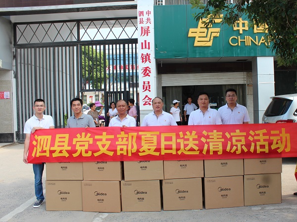 一個風扇,一瓶清涼的礦泉水,一句句貼心的問候,恰似夏日里的一縷縷涼風,沁人心脾。8月1日上午9點,烈日炎炎,熱氣蒸騰,讓人倍感炎熱,中共安徽鹽業房地產開發有限公司泗縣黨支部書記余海帶領公司黨員和入黨積極分子赴泗縣屏山鎮開展黨建活動。